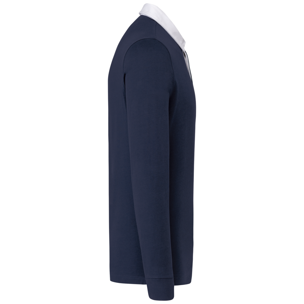 100% Gekamd katoen. Voorgekrompen gekamd jerseykatoen. Kraag in contrasterend wit twillkatoen (behalve de kleuren Red en Dark Grey, die een zwarte kraag hebben). Lijst met 3 knopen. Mouwuiteinden in 1x1 ribboord. Afwerking met visgraatmotief op de binnenzijde van de kraag en aan de zijsplitten.