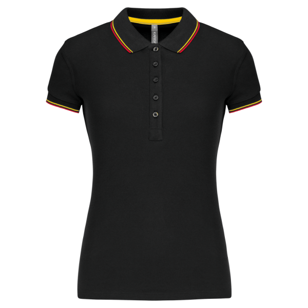 100% katoen piqué. Knooplijst met 5 knopen. Nektape en zijsplitjes in contrastkleur. Afwerking in rib met gecontrasteerde rand aan de kraag en mouwuiteinden. Afgewerkt met dubbele stiksels onderaan.