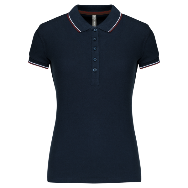 100% katoen piqué. Knooplijst met 5 knopen. Nektape en zijsplitjes in contrastkleur. Afwerking in rib met gecontrasteerde rand aan de kraag en mouwuiteinden. Afgewerkt met dubbele stiksels onderaan.