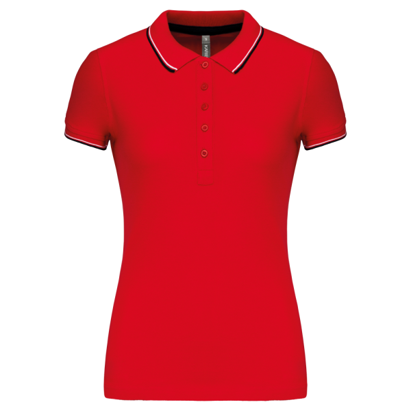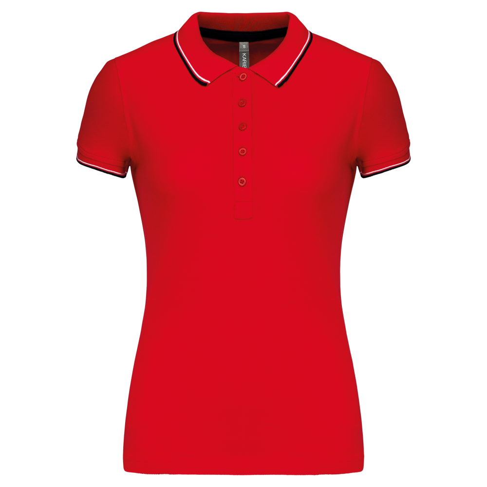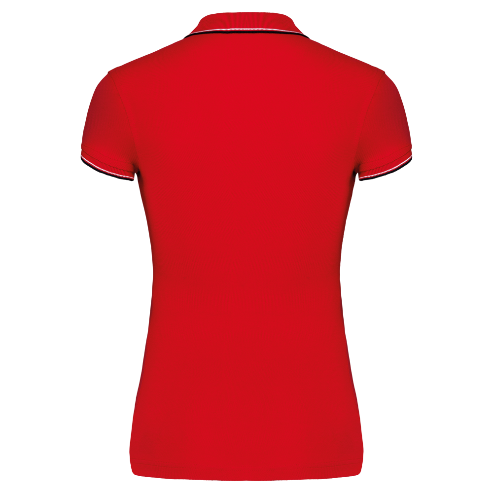 100% katoen piqué. Knooplijst met 5 knopen. Nektape en zijsplitjes in contrastkleur. Afwerking in rib met gecontrasteerde rand aan de kraag en mouwuiteinden. Afgewerkt met dubbele stiksels onderaan.
