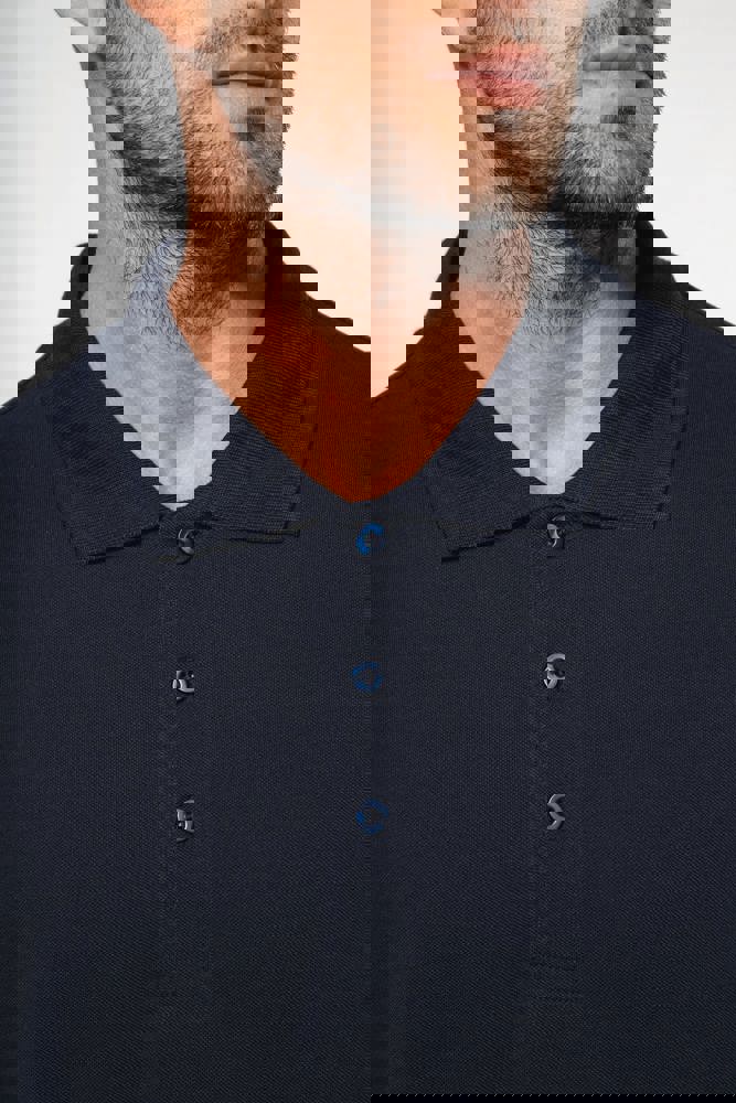 100% voorgekrompen piquékatoen (Oxford grey : 90% katoen / 10% viscose). Comfortabele snit. Kraag en mouwuiteinden in 1x1 ribboord. Knooplijst met 3 toon-op-toon knopen. Toon op toon nektape.