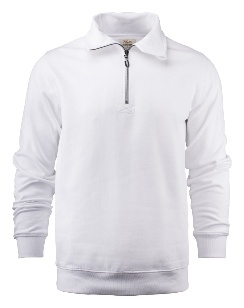 Sweatshirt met korte ritssluiting. 2 x 2 rib met elastaan aan de boord onderaan en aan de manchetten. De zippullers kunnen indien gewenst vervangen worden door één van de andere beschikbare kleuren. Oeko-Tex 100 gecertificeerd.