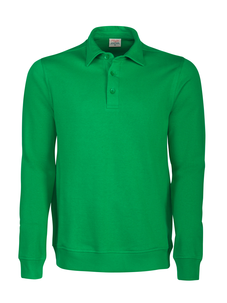 Sweatshirt met polokraag. 2 x 2 rib met elastaan aan de boord onderaan en aan de manchetten. Oeko-Tex 100 gecertificeerd.