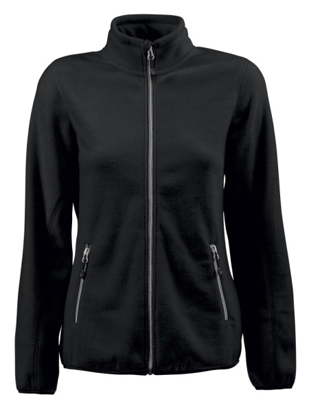 Geborstelde fleecejas met lange ritssluiting voor dames en heren. Geborsteld aan beide zijden. Twee voorzakken, contrasterende ritssluitingen en decoratieve stiksels op de mouwen. Elastische tape aan de boord onderaan en de manchetten.