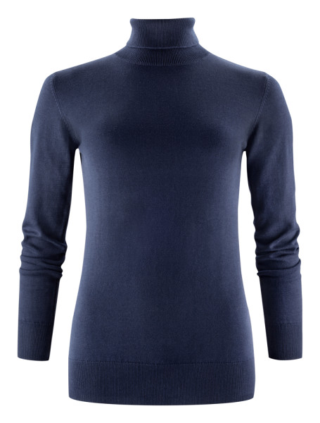 Gebreide sweater met rolkraag. 1x1 rib aan de zoom, manchetten en rolkraag.