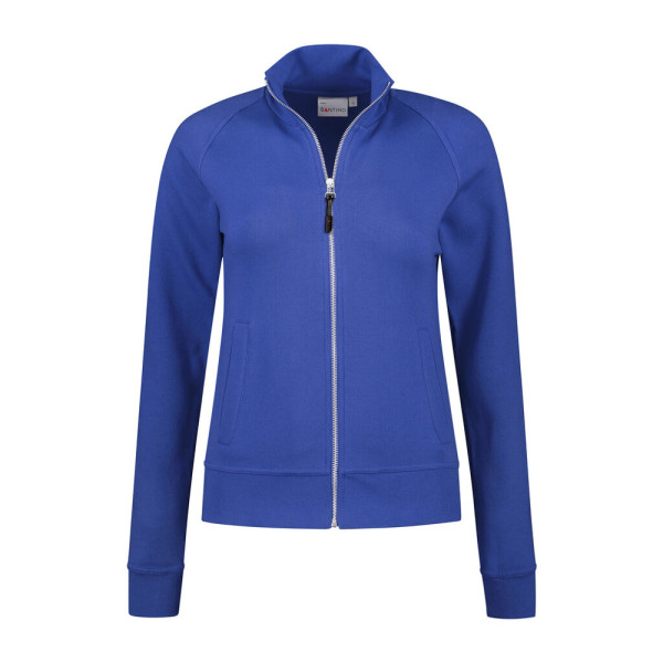 Sweatvest, met raglan mouw inzet, 50% katoen / 50% polyester, 280 gr/m², french terry met geruwde binnenzijde, ladies fit met opstaande kraag, mouw met manchet, tailleband in 1x1 rib en YKK rits.