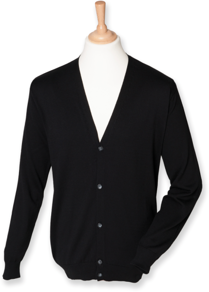 50% katoen / 50% acryl. Cardigan met v-hals. 6 toon op toon knopen. Rib aan de kraag.