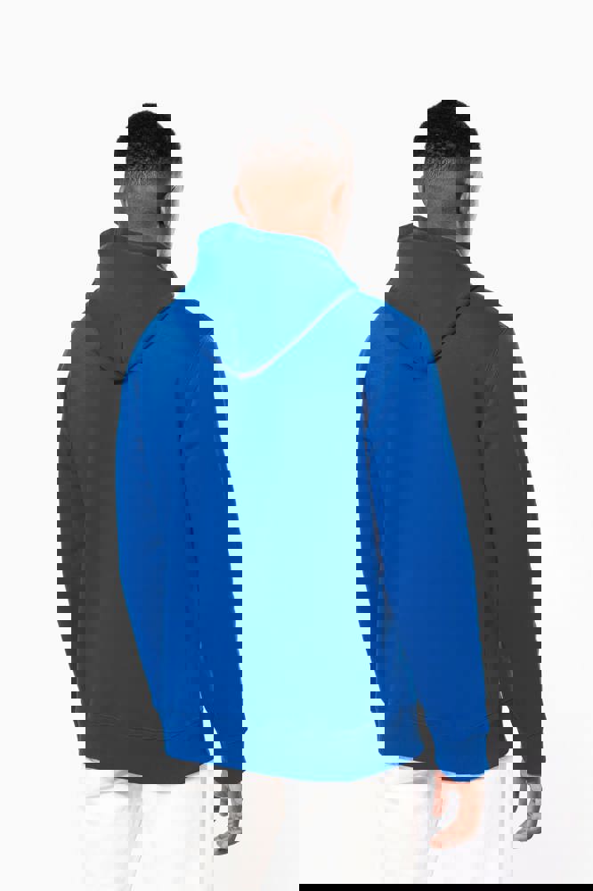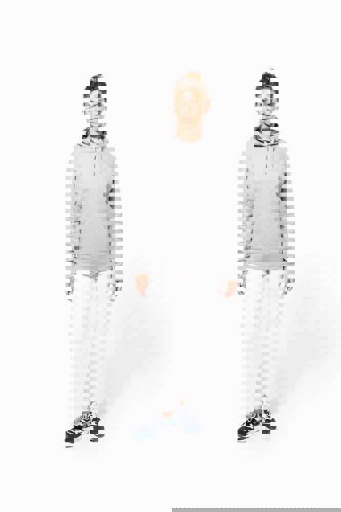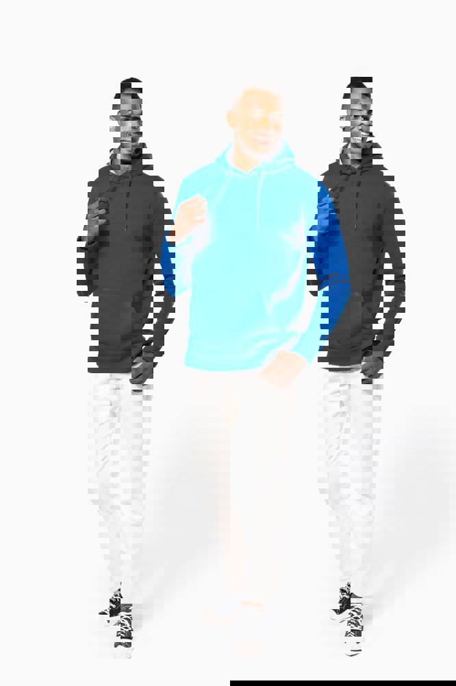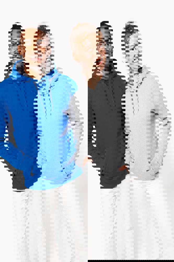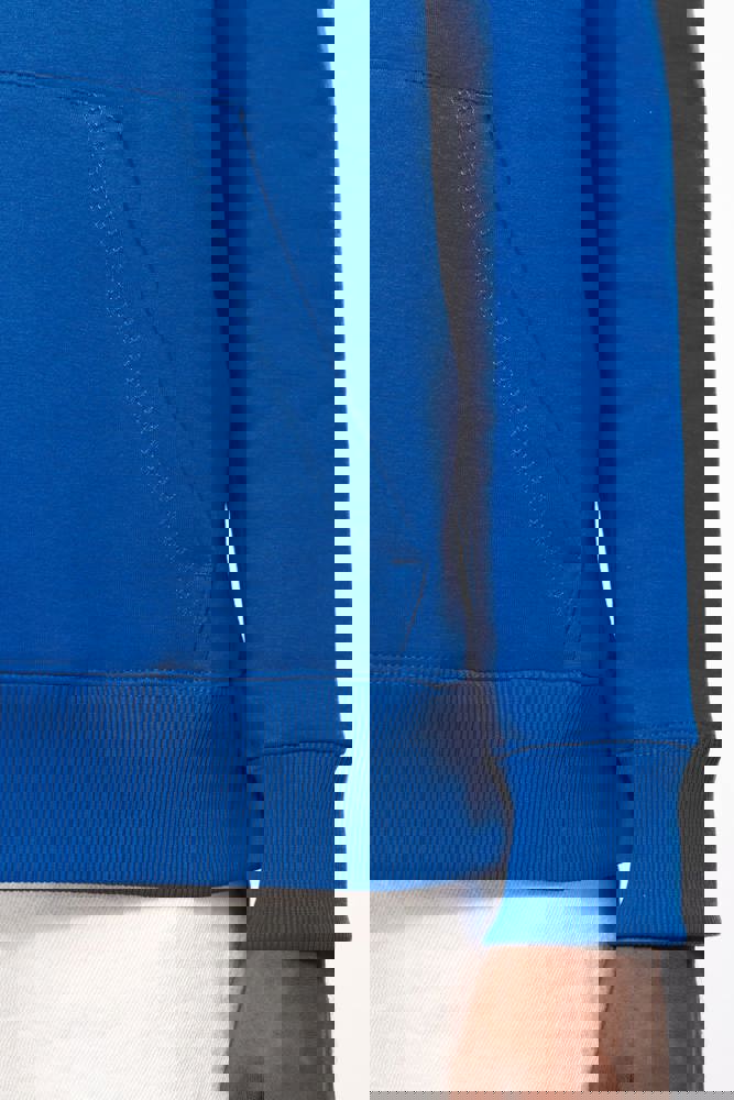 80% katoen / 20% polyester. Gekamd katoen. Voorgekrompen en gekamd fleece aan binnenkant sweater. Sillicone wash. Gecontrasteerd nektape. Gecontrasteerde capuchon. 'Kangaroe' zak aan de voorkant. Afwerking in ribboord.
