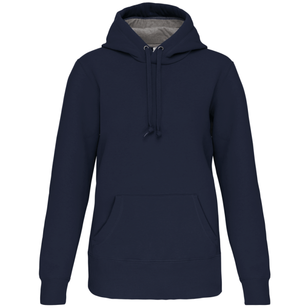 80% katoen / 20% polyester. Gekamd katoen. Voorgekrompen en gekamd fleece aan binnenkant sweater. Sillicone wash. Gecontrasteerd nektape. Gecontrasteerde capuchon. 'Kangaroe' zak aan de voorkant. Afwerking in ribboord.
