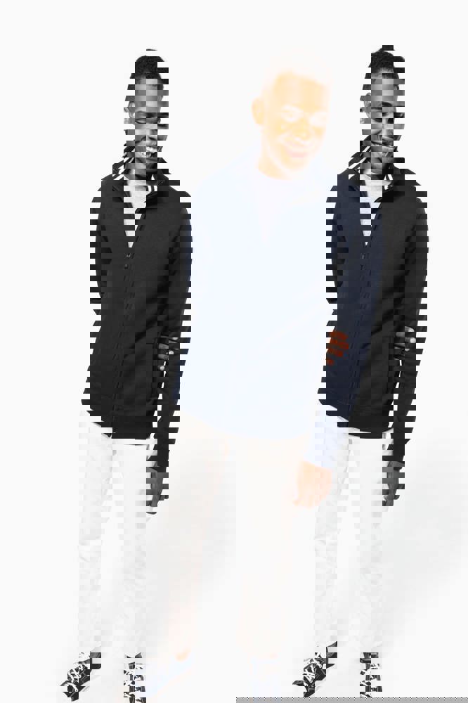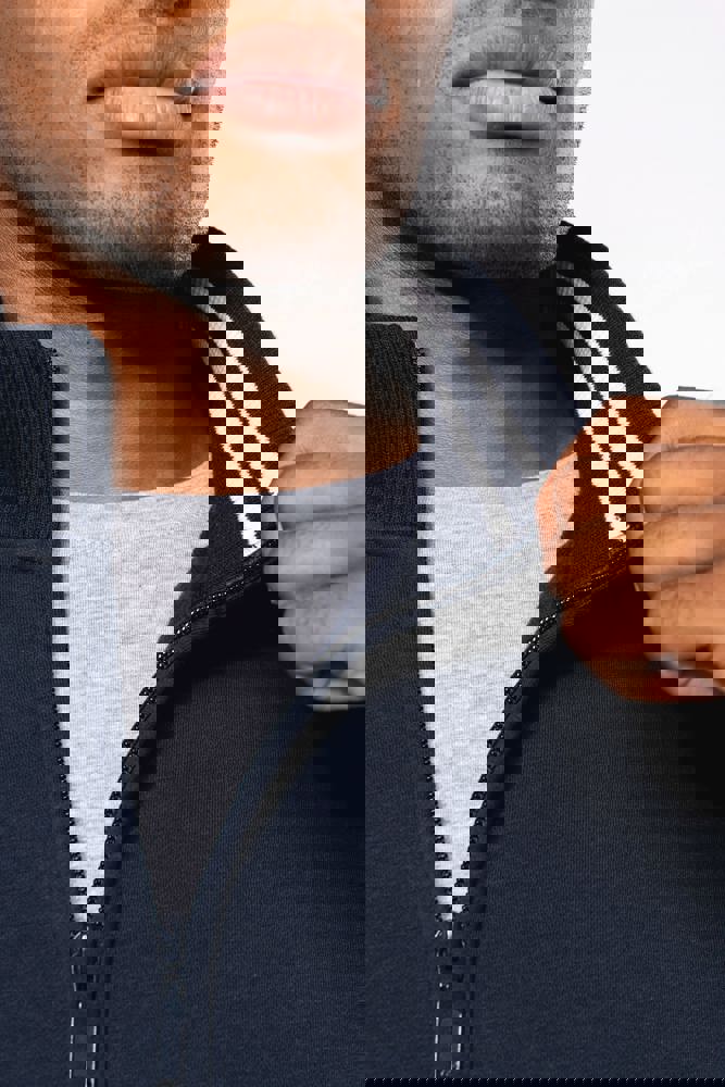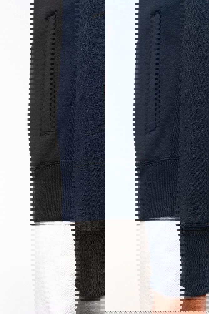 80% katoen / 20% polyester. Gekamd katoen. Low Shrunkage Fleece. Geborsteld en voorgekrompen fleece aan de binnenkant. Gewassen met siliconen. Rechte snit dankzij verticale inzetstukken in rib. Toon op toon nektape. (Behalve voor de kleur White = Oxford Grey nektape) Binnenkant kraag in rib met lijnen in contrastkleur. 2 voorzakken. Ribboord aan de mouwuiteinden en onderaan. Ritssluiting.