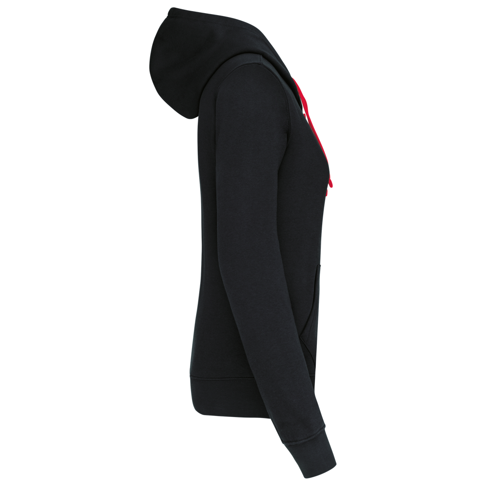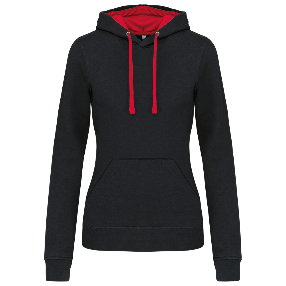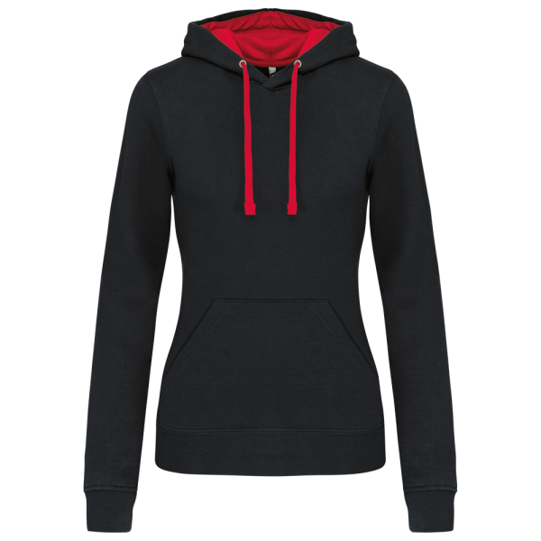 K465 - Damessweater met capuchon in contrasterende kleur