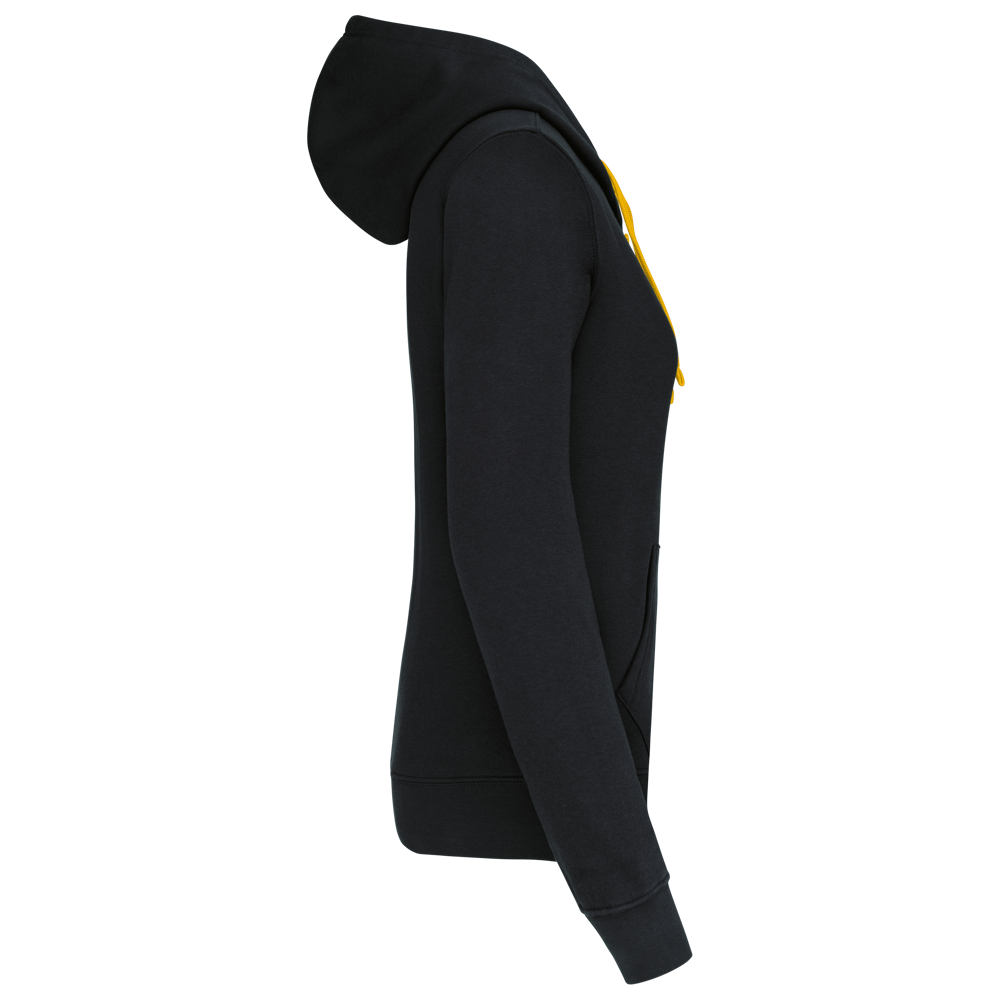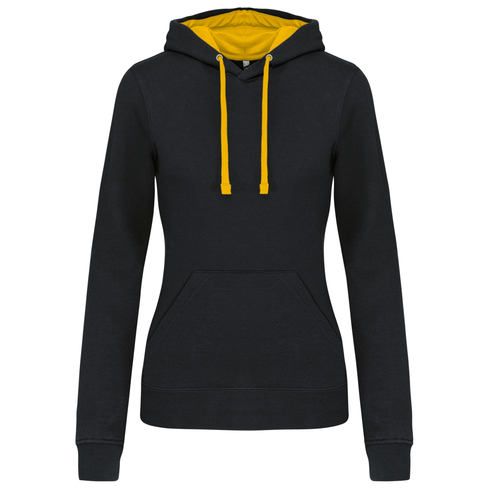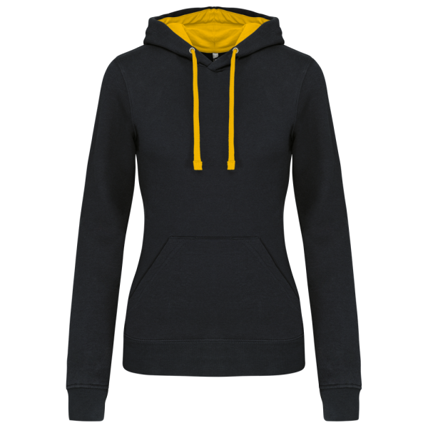 K465 - Damessweater met capuchon in contrasterende kleur
