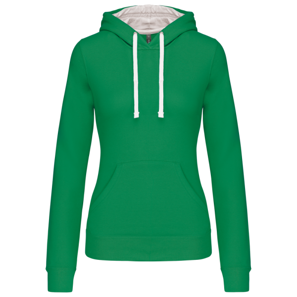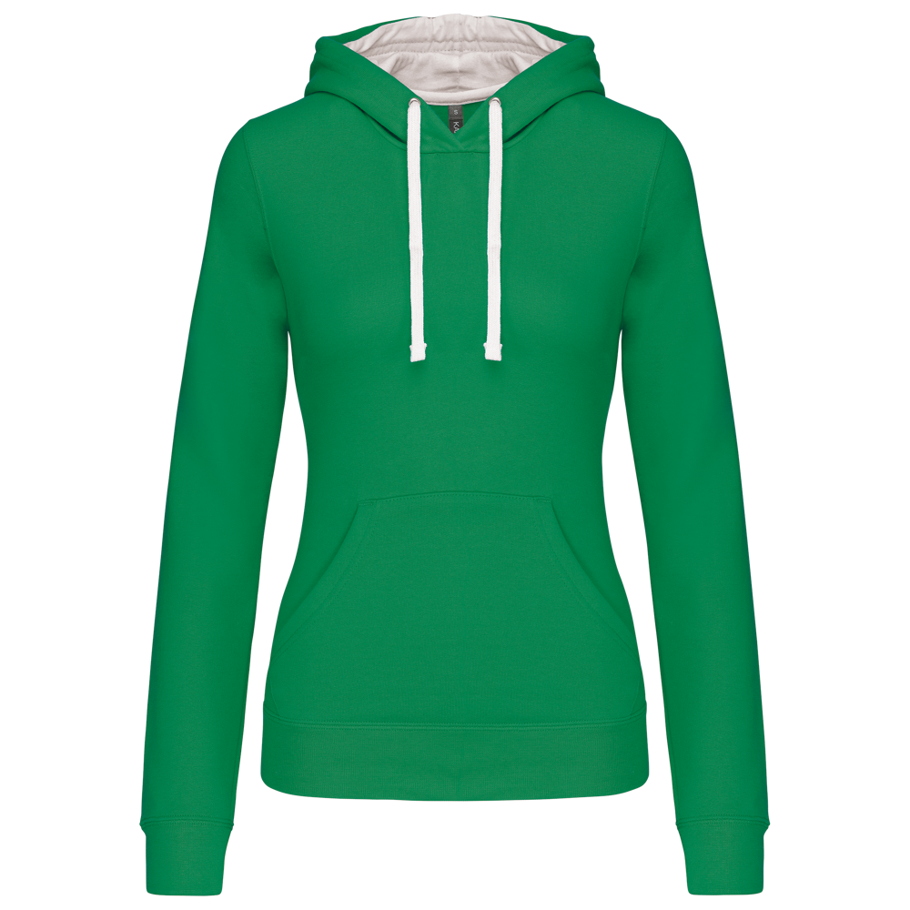 80% katoen / 20% polyester. Gekamd katoen. Geborsteld fleece aan de binnenkant. Gaatje voor draadje in de kangoeroezak en lusje aan de kraag voor oortjes. Ribboord aan mouwuiteinden en onderkant kledingstuk. Gevoerde capuchon in contrasterende kleur met aanrijgkoordjes.