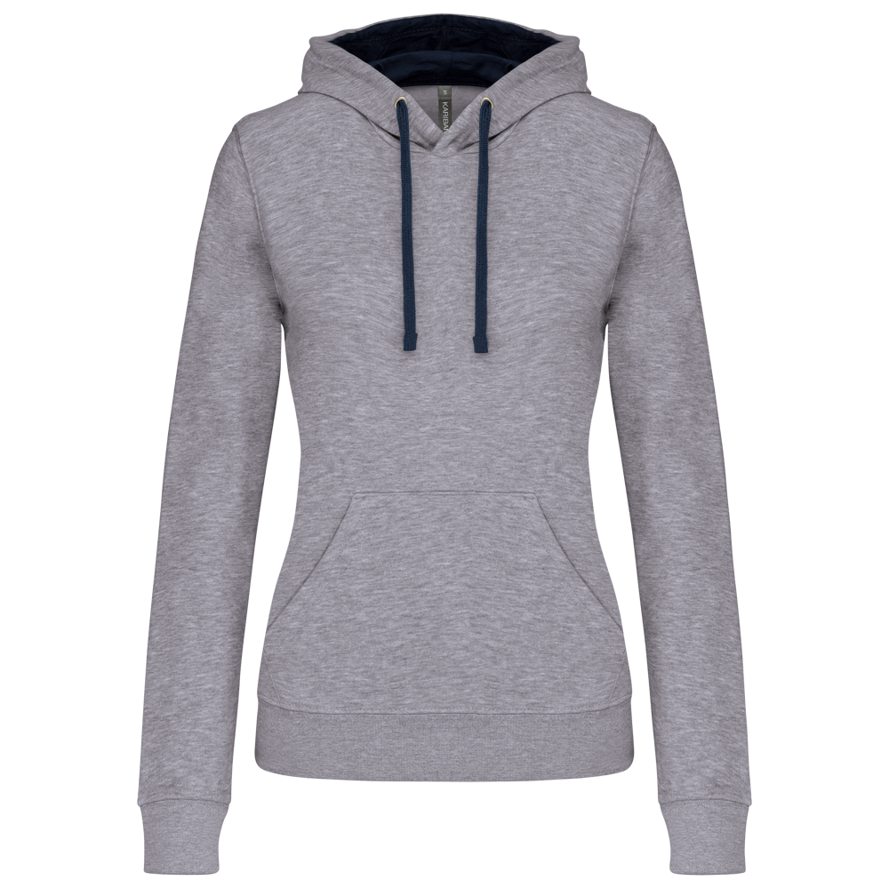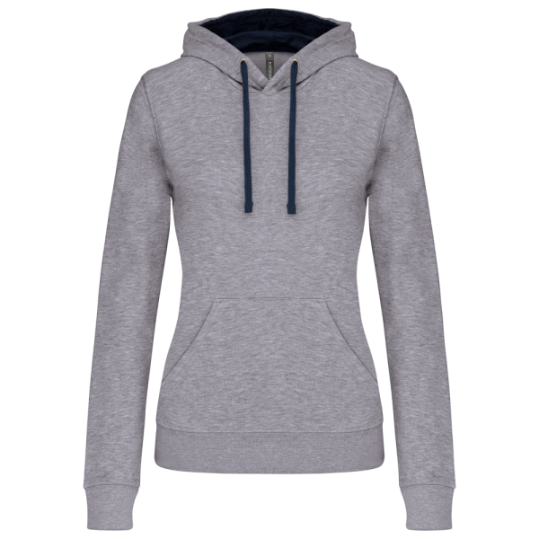 K465 - Damessweater met capuchon in contrasterende kleur