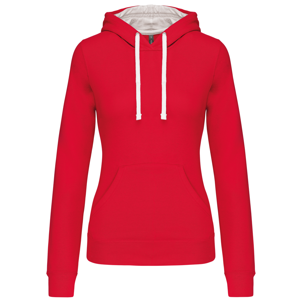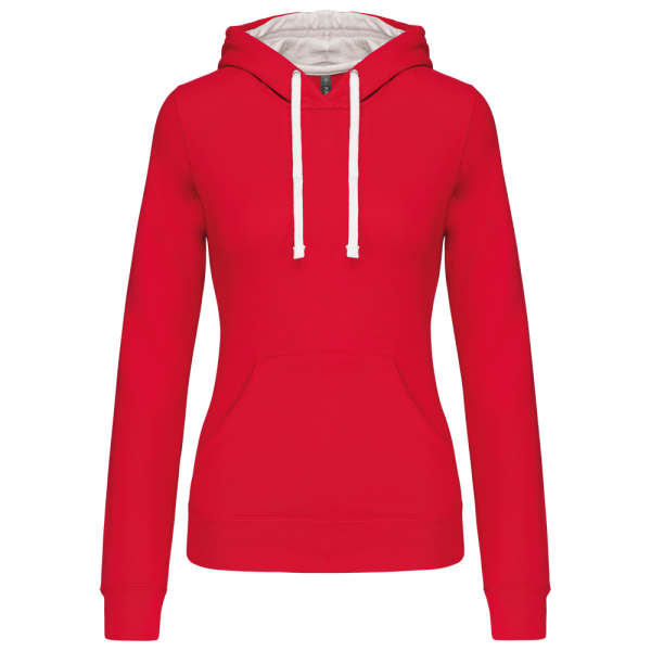 K465 - Damessweater met capuchon in contrasterende kleur