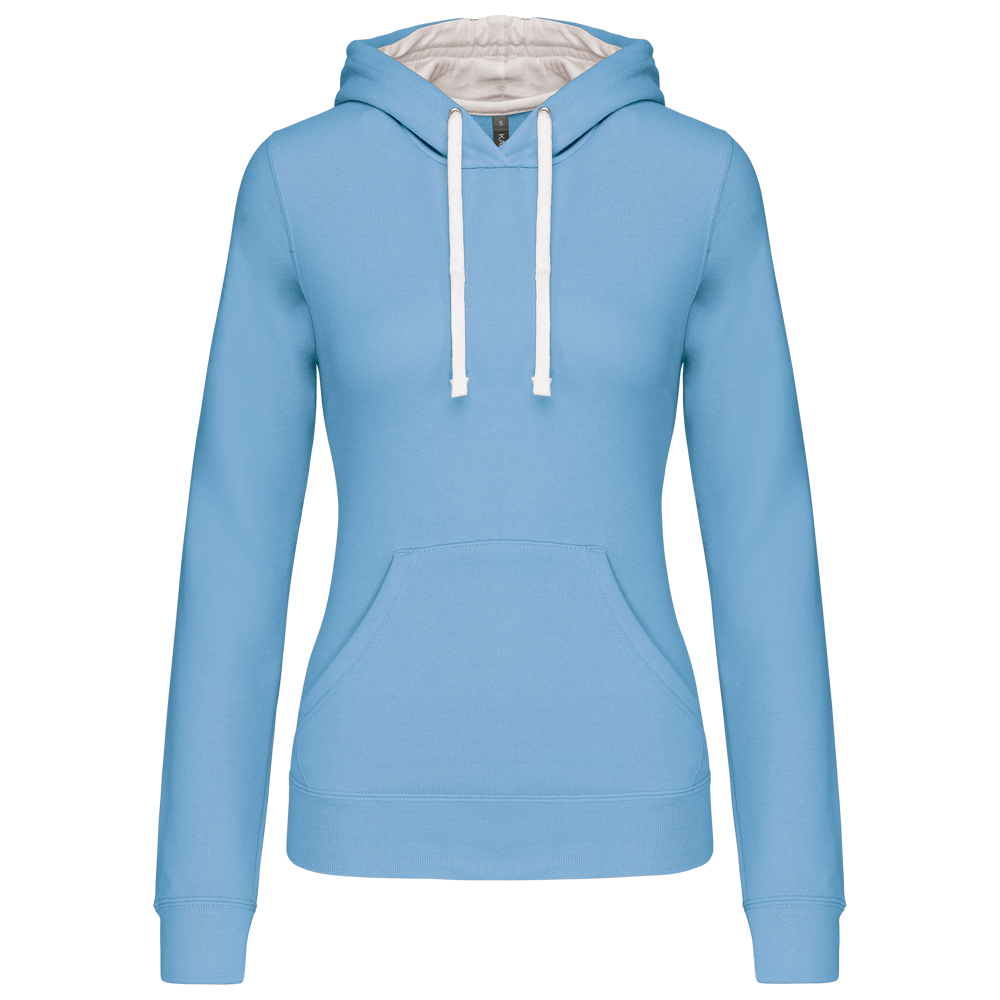 80% katoen / 20% polyester. Gekamd katoen. Geborsteld fleece aan de binnenkant. Gaatje voor draadje in de kangoeroezak en lusje aan de kraag voor oortjes. Ribboord aan mouwuiteinden en onderkant kledingstuk. Gevoerde capuchon in contrasterende kleur met aanrijgkoordjes.