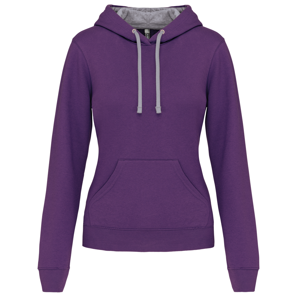 K465 - Damessweater met capuchon in contrasterende kleur