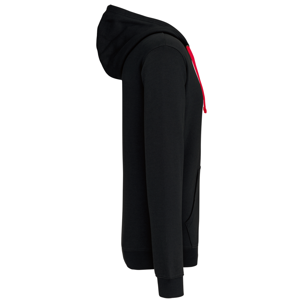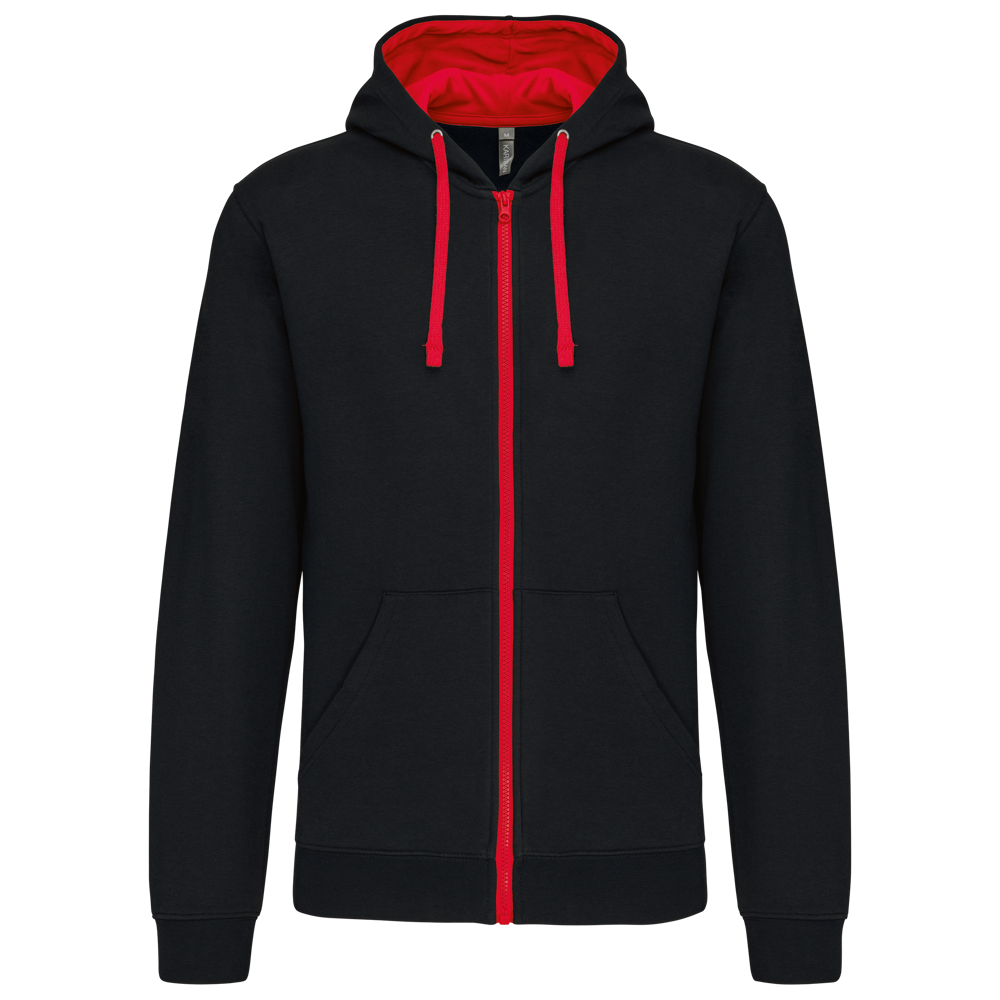 K466 - Herensweater met rits en capuchon in contrasterende kleur