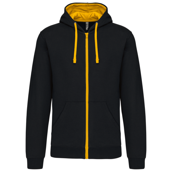 K466 - Herensweater met rits en capuchon in contrasterende kleur