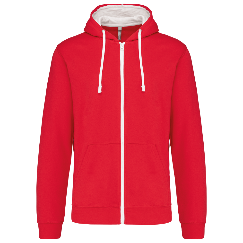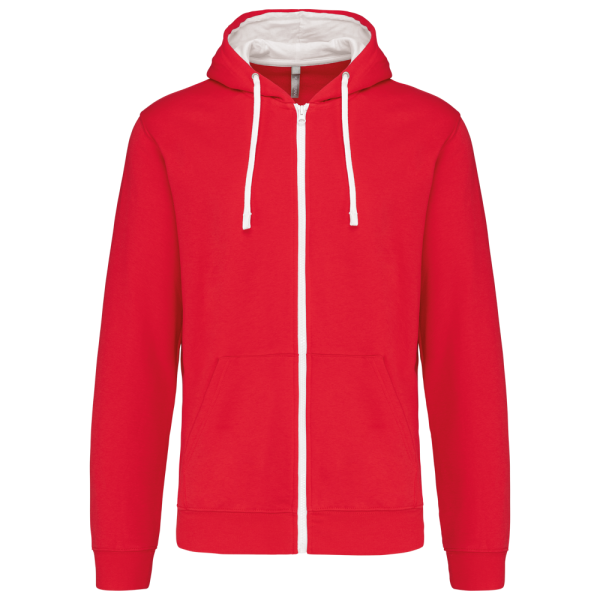 K466 - Herensweater met rits en capuchon in contrasterende kleur