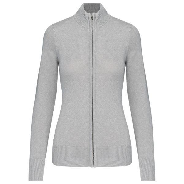 50% katoen / 50% acryl. Getailleerde snit. Opstaande 2-laagse kraag. Metaalkleurige ritssluiting. Nektape.