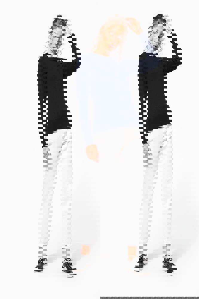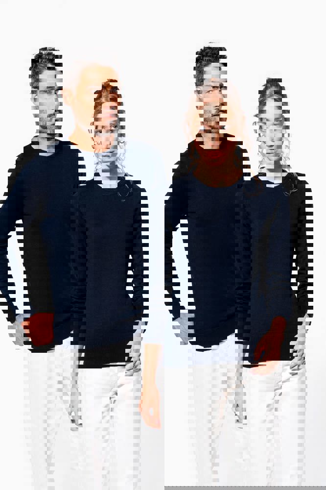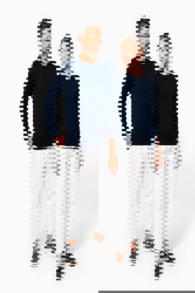 50% katoen / 50% acryl. Getailleerde snit. 2-laagse kraag in rib. Nektape.