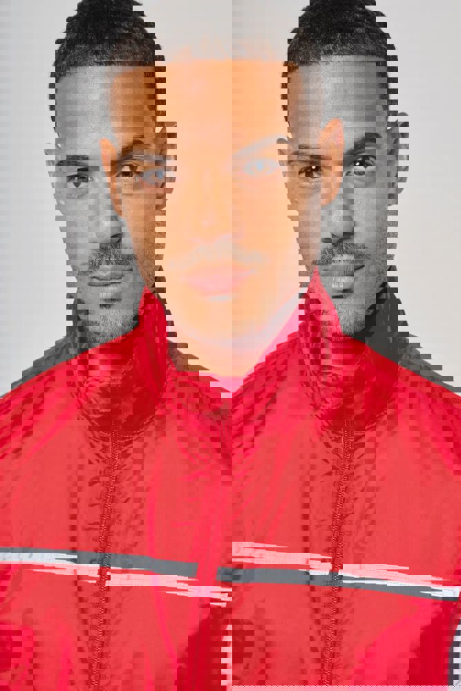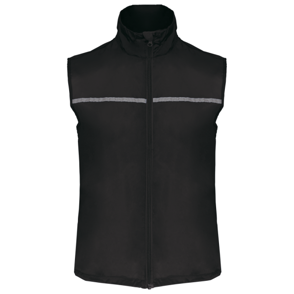 100% polyamide. Meshvoering onderaan rugzijde. Reflecterende biesjes op de voor- en achterkant. Elastisch aanrijgkoord met stopper onderaan. Multifunctionele binnenzak. Afm. 9,5x11 cm.