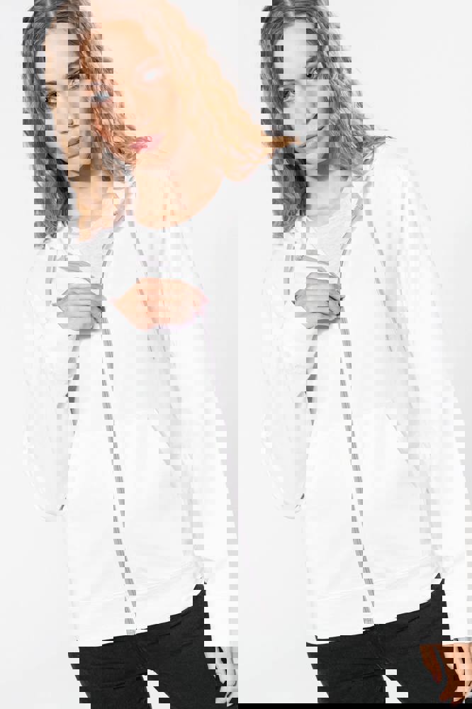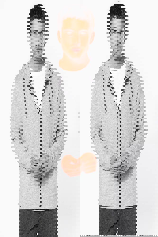 100% katoen (Oxford Grey: 90% katoen / 10% viscose). Gekamd katoen enzymgewassen. Voelt zacht aan. Losvallende moderne snit. Nektape in contrasterende kleur (Dark Grey voor de kleur Oxford Grey en Oxford Grey voor de andere kleuren). 2 kangoeroezakken. Mouwen en onderkant in hetzelfde materiaal. Contrasterende rits en tweekleurige aanrijgkoordjes aan de capuchon.