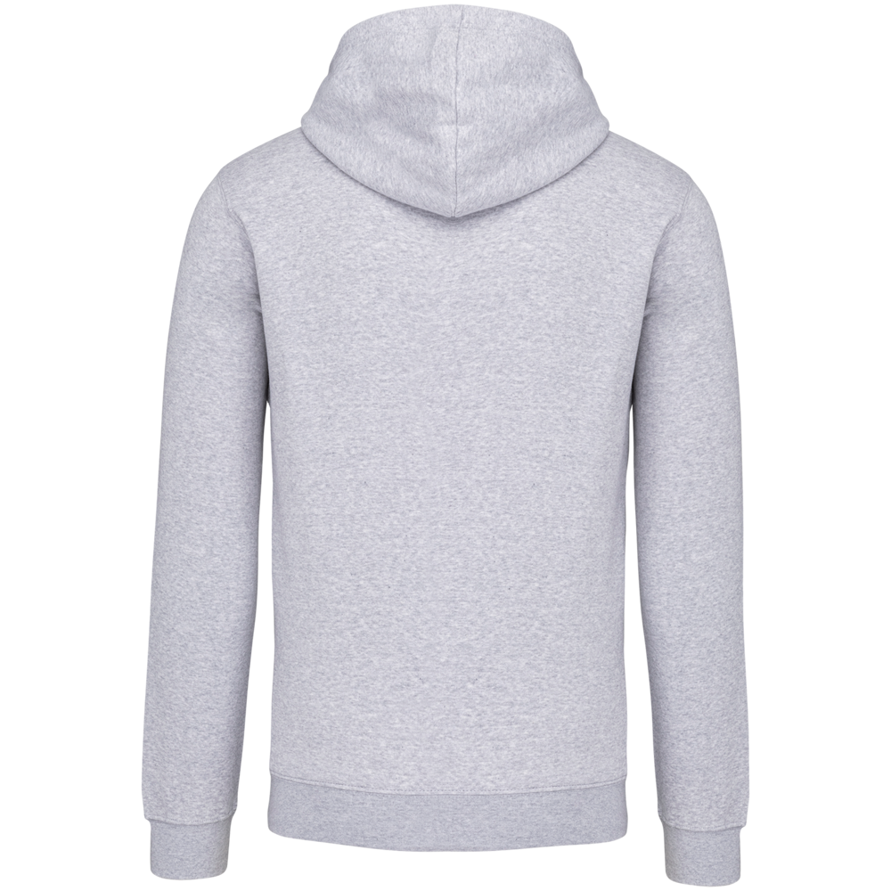 80% katoen / 20% polyester. Gekamd katoen. Geborsteld fleece aan de binnenkant. 'Kangaroe' zak aan de voorkant met gaatje voor draadje en lusje aan de kraag voor mp3-oortjes. Afwerking in ribboord. Gevoerde en gecontrasteerde capuchon met aanrijgkoordjes.