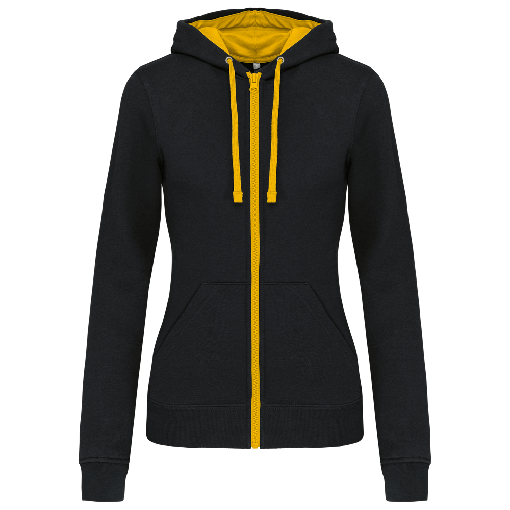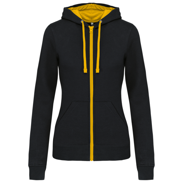 K467 - Damessweater met rits en capuchon in contrasterende kleur