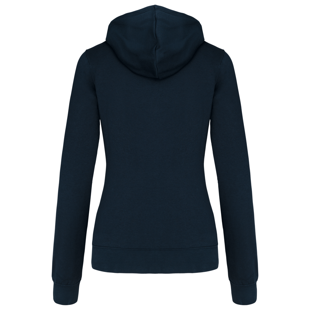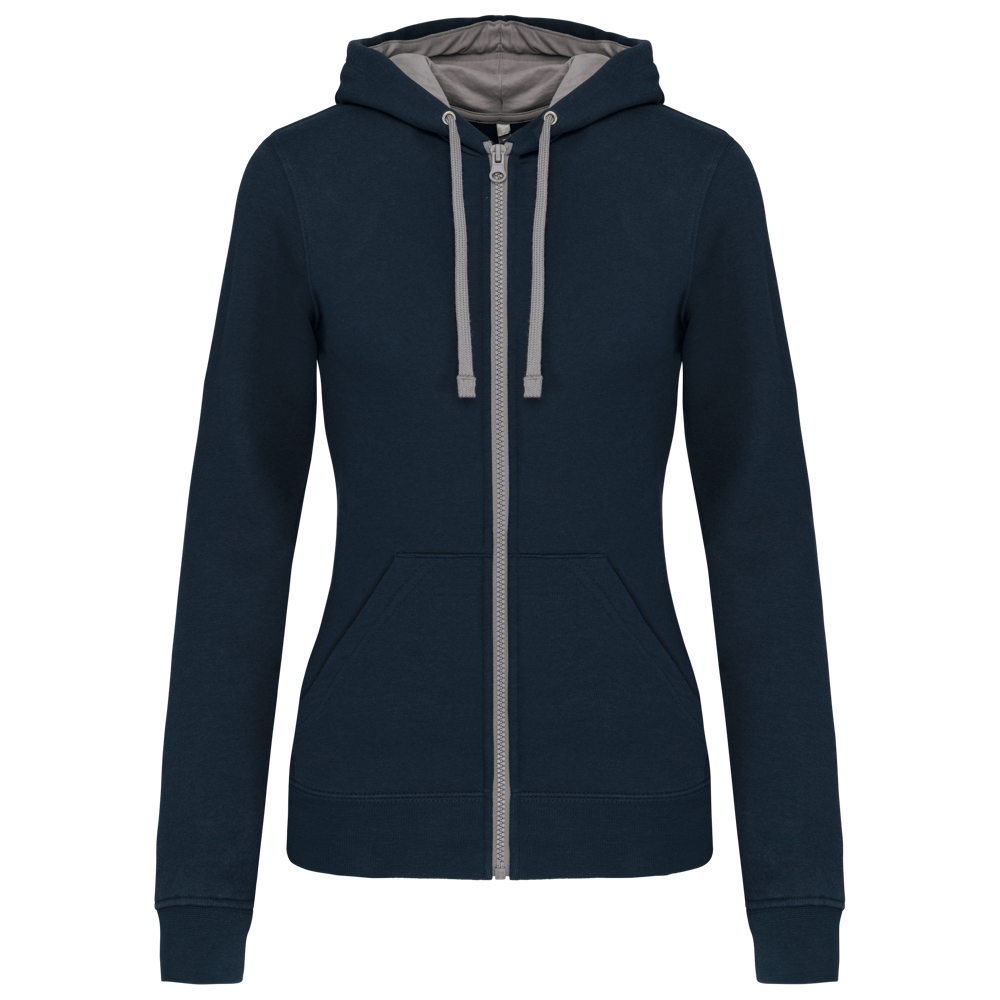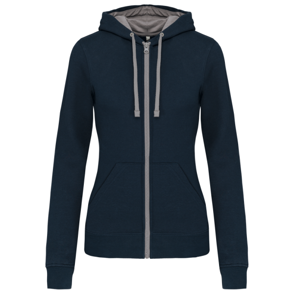 K467 - Damessweater met rits en capuchon in contrasterende kleur
