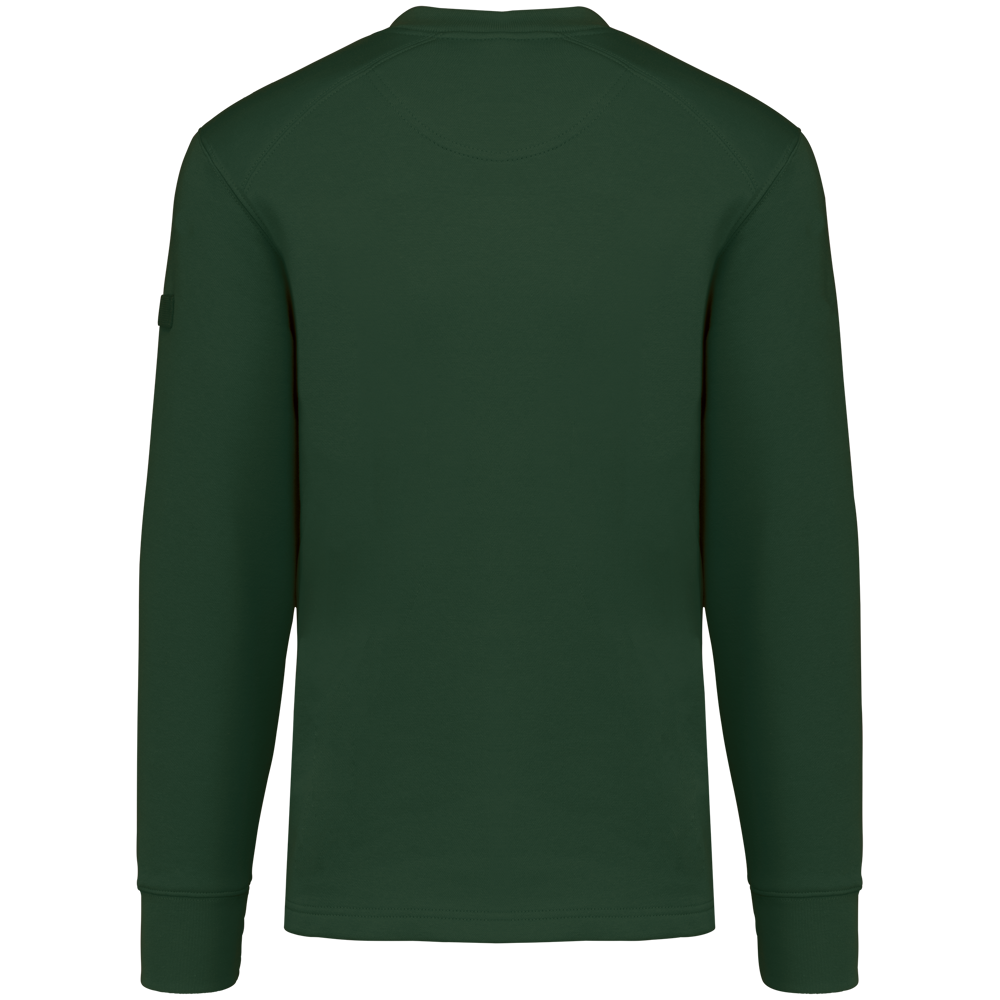 80% katoen / 20% polyester. Fleece 3 draden met LSF-behandeling (Low Shrinkage Fleece). Wasbaar op 60 °C. Ronde hals en mouwuiteinden in ribboord. Onzichtbare ritszak rechterzijkant. Versteviging op de schouders en ellebogen. Penhouder op de linkermouw. Halvemaanvormige afwerking op de achterkant. Ophanglus in de kraag. Afwerking met dubbel stiksel onderaan en verlengd achterpand voor meer comfort.