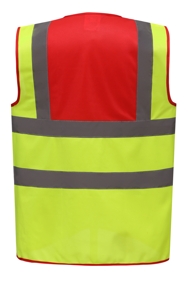 100% polyester met Velcro®sluiting. Twee 5 cm brede reflectiebanden rond het lichaam en één over elke schouder. Voldoet aan de volgende normering: -EN ISO20471:2013 Klasse2: enkel Hi-Vis Yellow, Hi Vis Orange en Orange/Hi Vis Yellow. - EN ISO20471:2013 Klasse 1: enkel Black/Hi Vis Yellow, Lime/Hi Vis Yellow, Navy/Hi Vis Yellow, Purple/Hi Vis Yellow, Paramedic Green/Hi Vis Yellow, Red/Hi Vis Yellow, Raspberry/Hi Vis Yellow, Royal Blue/Hi-Vis Yellow.