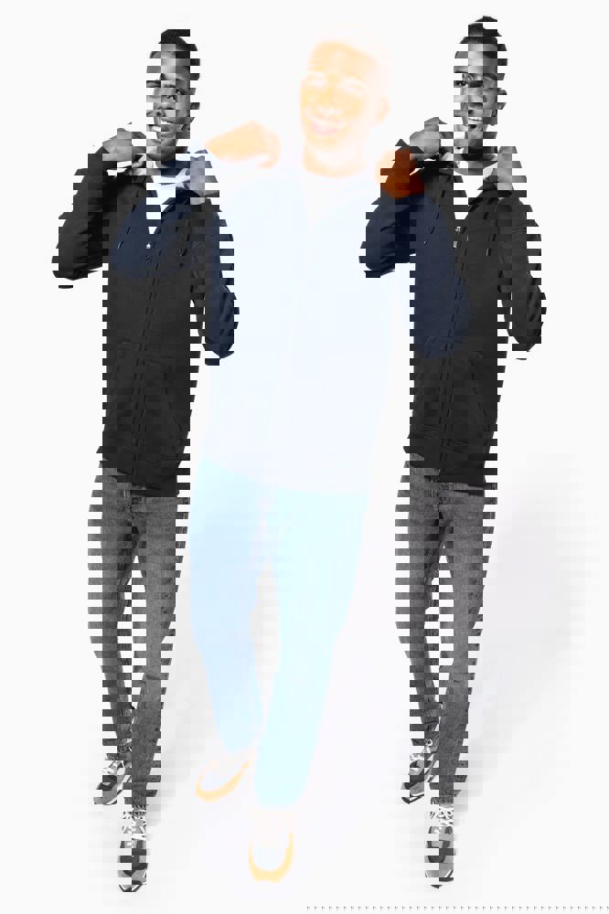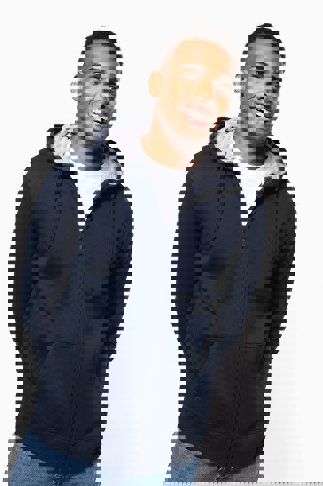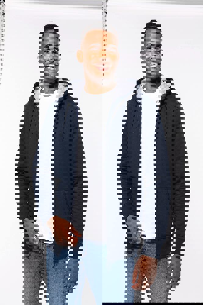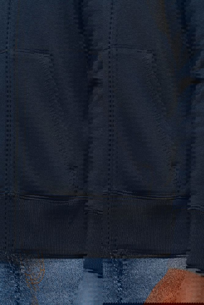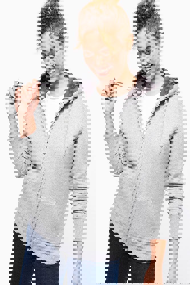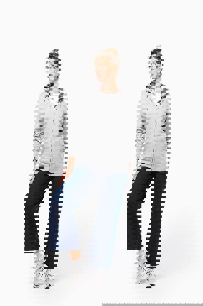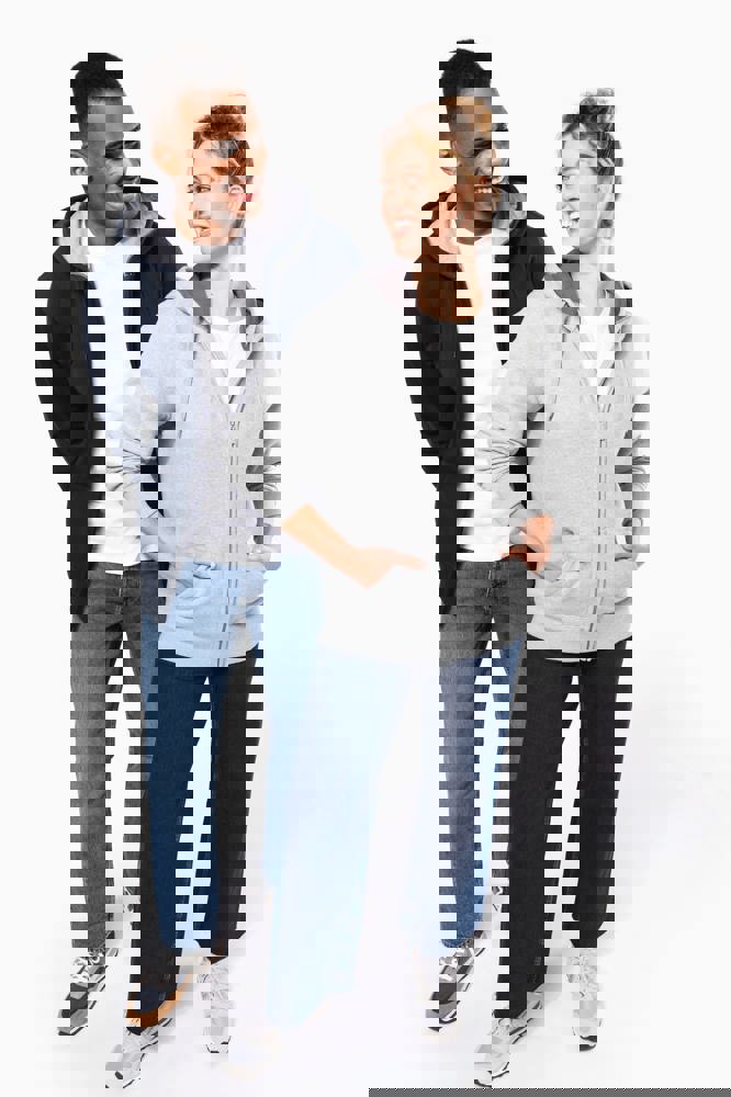 80% katoen / 20% polyester. Gekamd katoen. Voorgekrompen en gekamd fleece aan binnenkant sweater. Sillicone wash. Gecontrasteerd nektape. Gecontrasteerde capuchon in oxford grey (behalve oxford grey sweater daar is de capuchon dark grey). 'Kangaroe' zak aan de voorkant. Afwerking in ribboord. Rits.