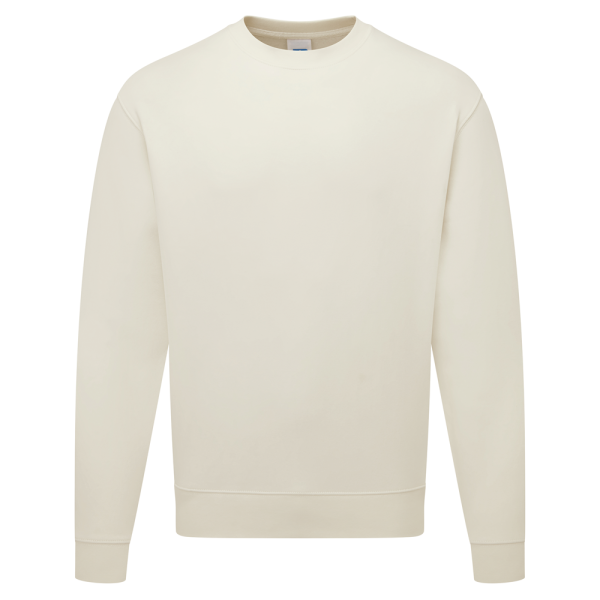 80% ringgesponnen gekamd katoen / 20% polyester en de buitenkant is 100% katoen (3-laagse stof) voor een optimaal drukoppervlakte. Nektape in visgraatmotief. Rechte snit. Set-in mouwen. Breed ribboord aan de taille en de mouwuiteinden. Zijnaden. Overstiksels aan de mouwsgaten, polsen en taille.