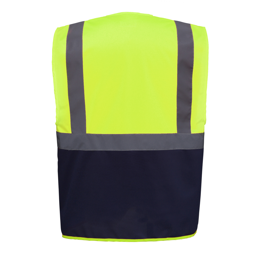 100% polyester. 5 cm brede reflectiebanden rond het lichaam en één over elke schouder. Mobiele telefoon/walkie-talkie zak op de borst links vooraan. Ritssluiting vooraan over de hele lengte. Twee zakken onderaan met flappen en toegankelijk van de boven- en zijkant. Penzakken en sleutelhouder. ID-zak op de rechterborst. Groot oppervlak op achterkant voor decoratie. Voldoet aan de volgende normering: -EN ISO20471:2013 Klasse 2: enkel Hi Vis Yellow, Hi Vis Orange en Hi Vis Yellow/Hi Vis Orange. -EN ISO20471:2013 Klasse 1: enkel Paramedic Green/Hi Vis Yellow, Royal Blue/Hi Vis Yellow, Red/Hi Vis Yellow, Hi Vis Yellow/Black, Hi Vis Orange/Black, Hi Vis Yellow/Navy, Hi Vis Orange/Navy, Hi Vis Yellow/Grey, Hi Vis Orange/Grey en Hi Vis Yellow/Purple.