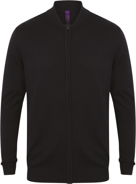 50% katoen / 50% acryl. Unisex cardigan met bomberkraag in fijn tricot van gauge 12....meer