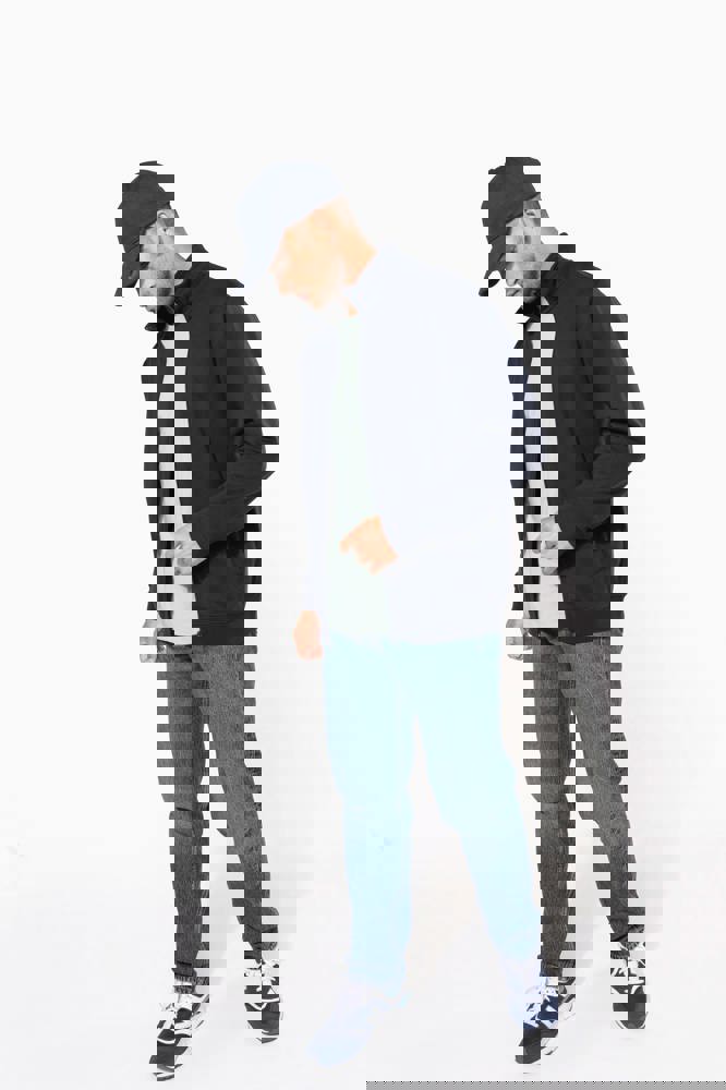 80% katoen / 20% polyester. Gekamd katoen. Geborsteld fleece aan de binnenkant. Ingezette mouwen. 2 omzoomde zakken aan de voorkant. Nektape met visgraatmotief. Ribboord aan mouwuiteinden en aan de onderkant.