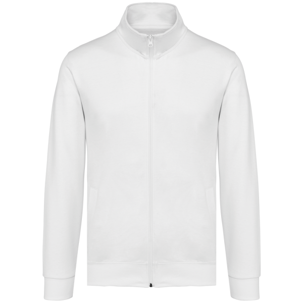 80% katoen / 20% polyester. Gekamd katoen. Geborsteld fleece aan de binnenkant. Ingezette mouwen. 2 omzoomde zakken aan de voorkant. Nektape met visgraatmotief. Ribboord aan mouwuiteinden en aan de onderkant.