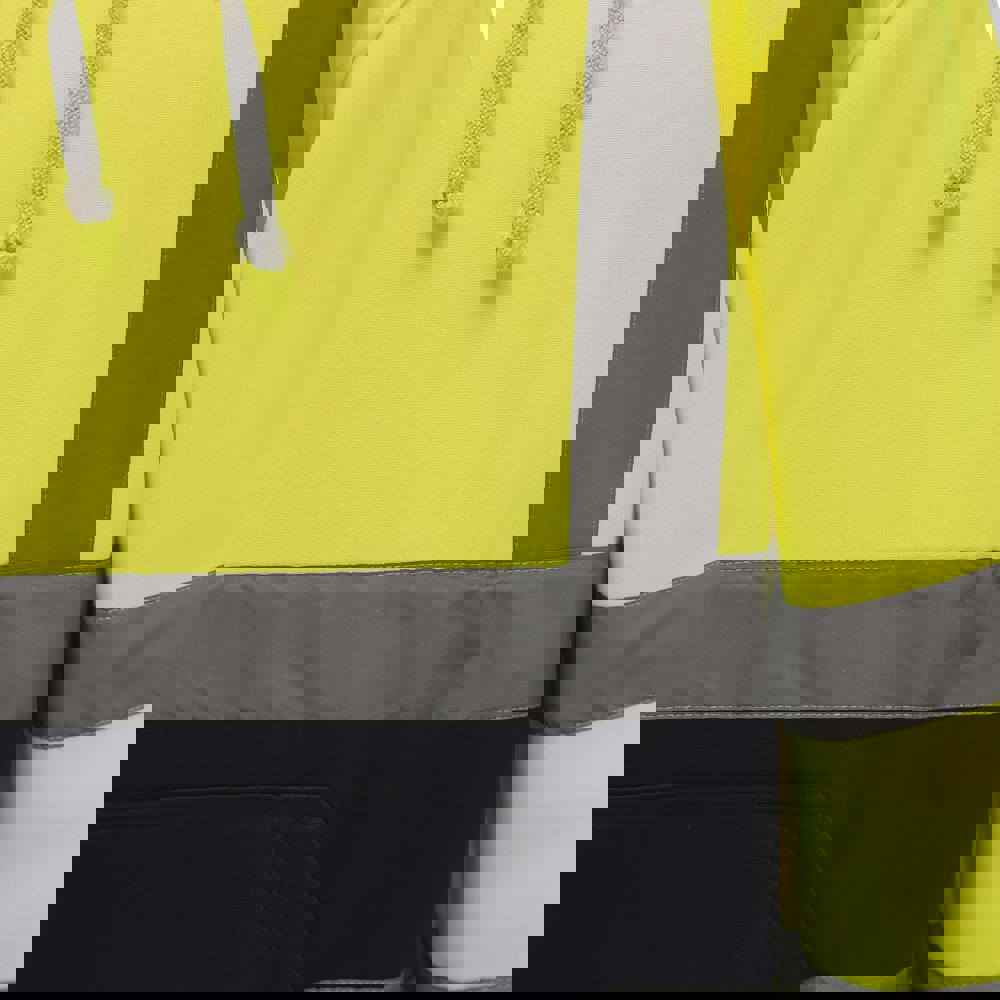 100% niet-pluizend polyester. 2 reflecterende stroken (5 cm breed) rond het lichaam en op de armen. Een reflecterende band op iedere schouder. Nektape. Capuchon (in het verlengde van de kraag) met aanrijgkoordje. Ingezette mouwen. Kangoeroezak aan de voorkant. Uiteinden van mouwen en kledingstuk in ribboord. Dubbel stiksel aan kraag, uiteinden van mouwen en kledingstuk. Norm EN ISO 20471 van klasse 3 : Hi-Vis Yellow, Hi-Vis Orange, Hi-Vis yellow/Navy, Hi-Vis Orange/Navy.