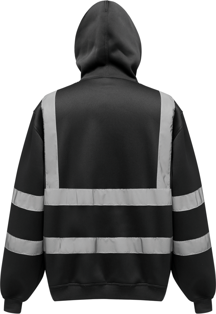 100% niet-pluizend polyester. 2 reflecterende stroken (5 cm breed) rond het lichaam en op de armen. Een reflecterende band op iedere schouder. Nektape. Capuchon (in het verlengde van de kraag) met aanrijgkoordje. Ingezette mouwen. Kangoeroezak aan de voorkant. Uiteinden van mouwen en kledingstuk in ribboord. Dubbel stiksel aan kraag, uiteinden van mouwen en kledingstuk. Norm EN ISO 20471 van klasse 3 : Hi-Vis Yellow, Hi-Vis Orange, Hi-Vis yellow/Navy, Hi-Vis Orange/Navy.