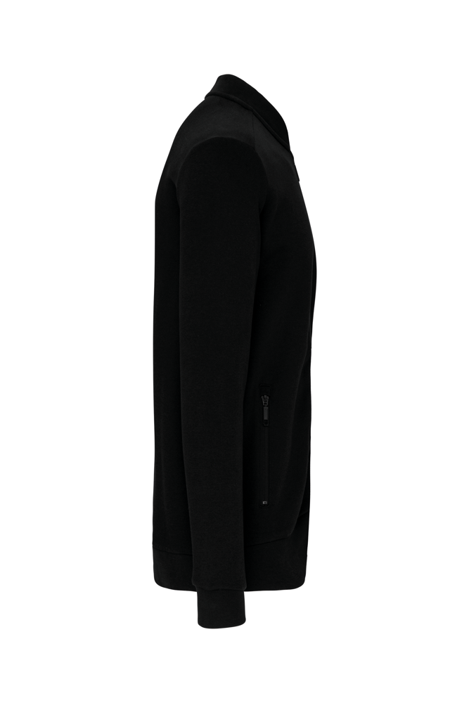 80% katoen / 20% polyester. Sweat molleton 3 draden met LSF-behandeling (Low Shrinkage Fleece). Wasbaar op 60°C. Ritssluiting en 2 toon-op-toon ritszakken aan de voorkant. Teddy kraag. Nektape met visgraatmotief. Ribboord aan de mouwuiteinden en de onderkant.