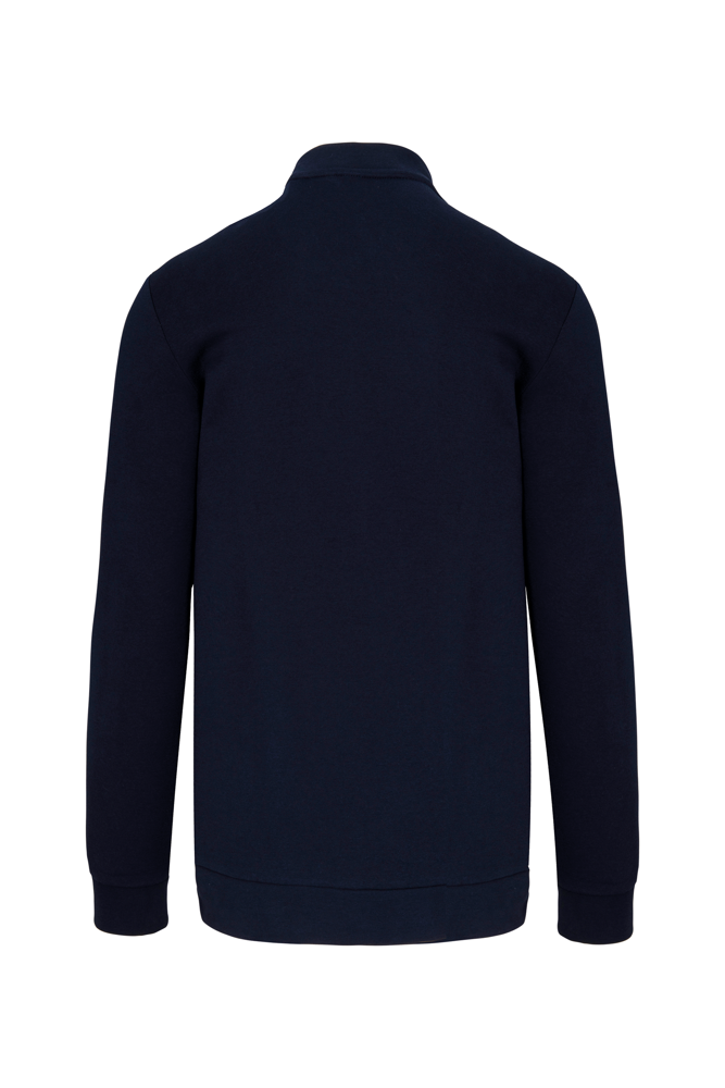 80% katoen / 20% polyester. Sweat molleton 3 draden met LSF-behandeling (Low Shrinkage Fleece). Wasbaar op 60°C. Ritssluiting en 2 toon-op-toon ritszakken aan de voorkant. Teddy kraag. Nektape met visgraatmotief. Ribboord aan de mouwuiteinden en de onderkant.