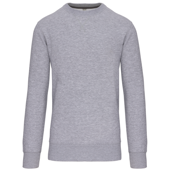 80% katoen / 20% polyester. Gekamd katoen. Voorgekrompen en gekamd fleece aan binnenkant sweater. Sillicone wash. Gecontrasteerd nektape. (Middle Grey voor de kleur Oxford Grey en Heather Grey voor alle andere kleuren). Ronde hals in rib. Kraag afgewerkt met kruis-overstiksels. Afwerking in ribboord.