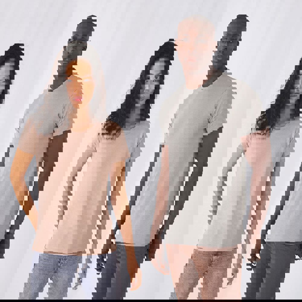 100% biologisch of biologisch in conversion ringgesponnen gekamd katoen. (Behalve Sport Grey: 90% organisch gekamde ringgesponnen katoen/10% viscose). Single Jersey. Comfortabele lengte. Zijnaden. Kraag van fijne rib. De hals is afgewerkt met een bies. Aangenaam aanvoelen en extra zacht. "B&C No Label" voor een perfecte rebranding.
