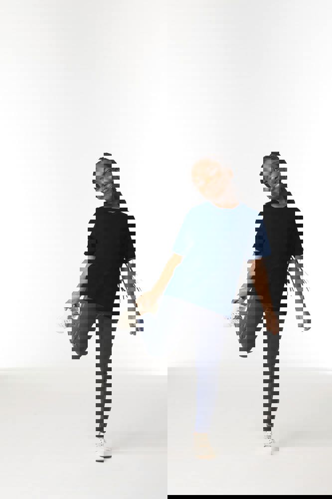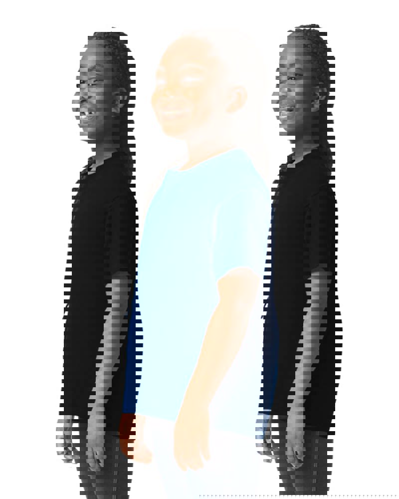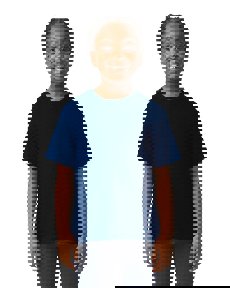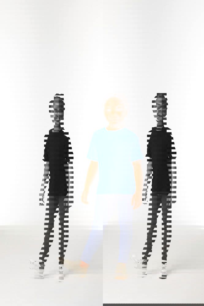100% voorgekrompen ringgesponnen katoen (Sport grey: 90% voorgekrompen ringgesponnen katoen / 10% polyester. Jersey steek. Fijne ribkraag. Nektape van schouder tot schouder. Europese maatvoering. Zijnaden (3/4 en 5/6 jaar). Tubulaire snit (7/8 t/m 12/14 jaar). Afwerking met dubbele stiksels.