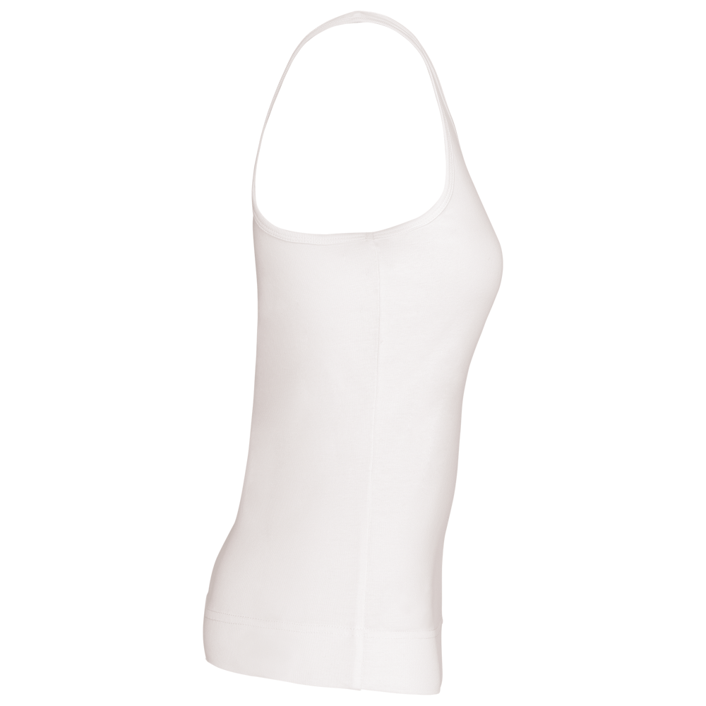 100% katoen 1x1 rib. Racerback. Afwerking met dubbele stiksels.meer