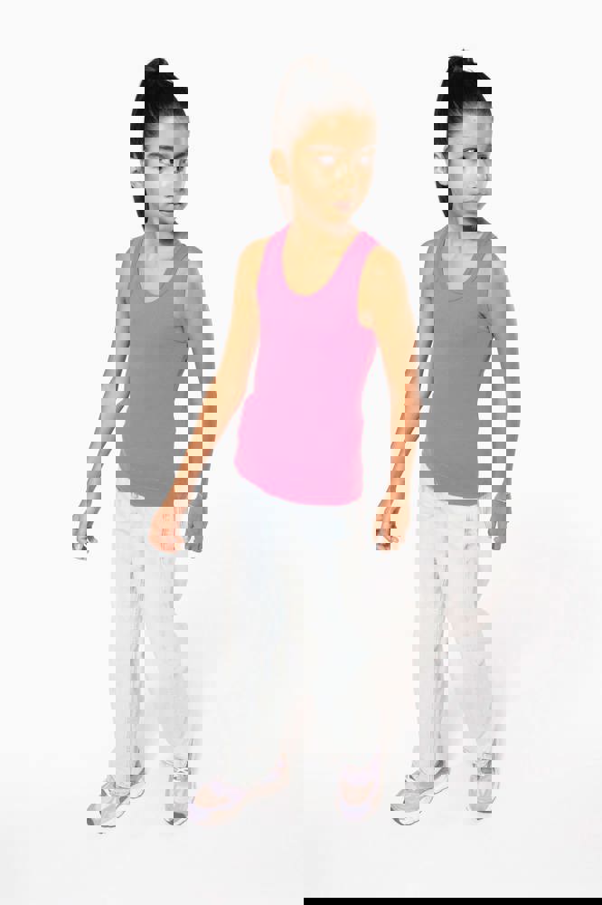 100% katoen. 1x1 rib. Racerback. Afwerking met dubbele stiksels.meer