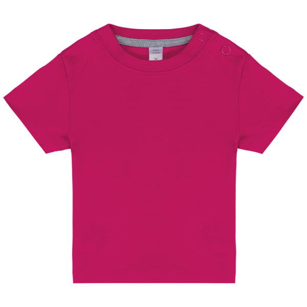 100% enzym behandeld katoen voor extra zacht aanvoelen. Ronde hals met 2 drukknopen ter hoogte van de schouder. Gecontrasteerd nektape. Afwerking met dubbele stiksels.