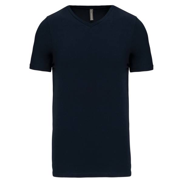 97% katoen / 3% elasthan. Chiné kleuren: 87% katoen / 9% viscose / 4% elasthan. V-hals. Dubbel stiksel aan mouwuiteinden en onderkant. De moderne getailleerde snit zijn volgens de laatste modetrends.